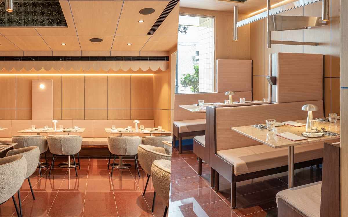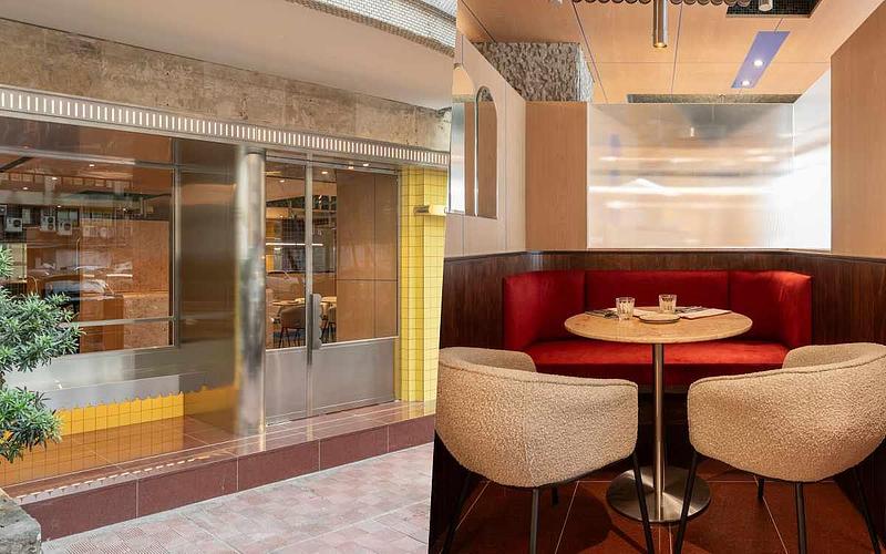 圖片來源:Ochre餐廳外觀耀眼的暖黃磚牆,代表著太陽的色彩,赭紅色地磚是富有生命力的紅土之色,走進餐廳內,牆面採用大量木質飾面,以及木作訂製沙發卡座設計,劃分出不同的用餐區域,營造開放的空間感,同時保有私密的區域角落。