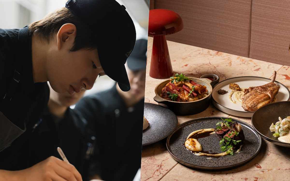 圖片來源:Ochre座位區珊瑚粉色布面與簇絨圓弧復古座椅,提供私人寓宅般的愜意舒適。金屬門框、餐廳內木板間隙與錯落空間中的海軍藍彩、連續弧形木飾面與特製金屬照明燈,與若隱若現的半網窗簾等跳脫想像的有趣設計,同時,視角所及包含瑪黑代理家居品牌:丹麥 &Tradition 與西班牙鬼才設計師Jaime Hayon、丹麥雙人工作室Space Copenhagen合作的燈飾、Bloomingville 傢俱、來自歐洲、韓國等美感杯盤等,處處皆是瑪黑家居美感觸角延伸,讓美食回歸生活,希望進到餐廳的每位客人,都能卸下一身疲憊,等待最“火熱”的款待。