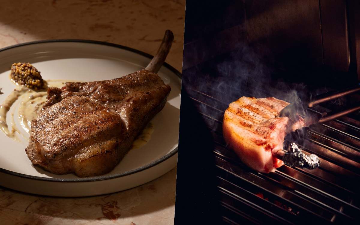 熟成帶骨巧克力豬 桂花芭樂泥/生醃芥末子/刺蔥子風味鹽 $1,380