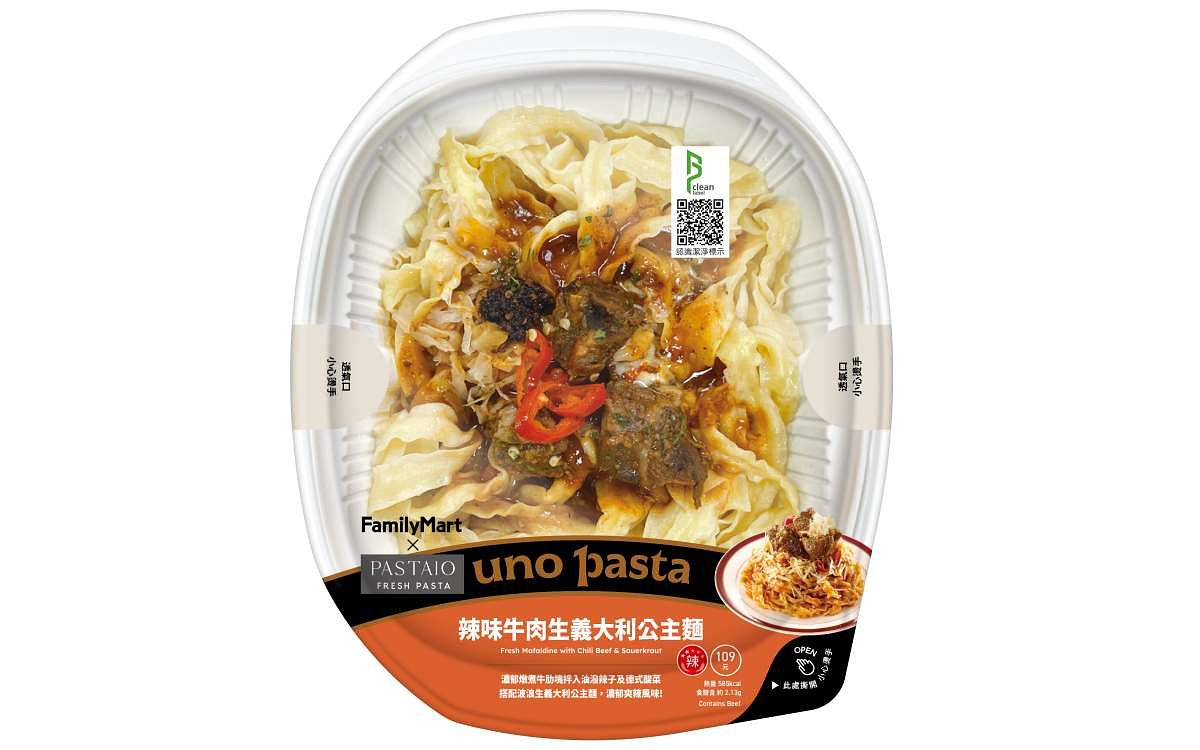 圖片來源:全家便利商店uno pasta X PASTAIO-辣味牛肉-生義大利公主麵 NT$109