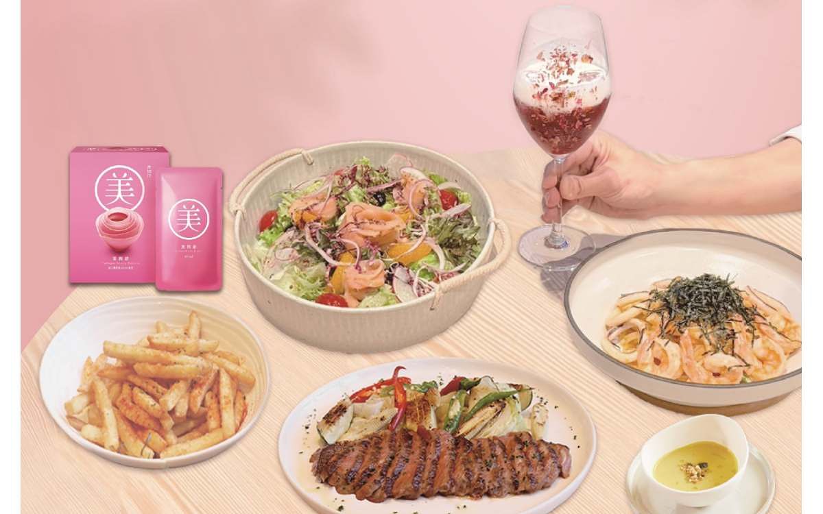 圖片來源:TOK盡興食光百香油醋玫鮭沙拉盆以粉嫩色系鮭魚圈出玫瑰花形狀,象徵向媽咪們獻花,酸甜鹹交錯的口感,更讓媽咪欲罷不能!主食部分則推出粉橘色系明太子粉紅醬海鮮麵,以鹹香的明太子醬拌炒扁麵,搭配Q彈鳳尾蝦與水產,口感香氣迷人,飲品也特地準備了超夢幻的鹹奶蓋洛神花茶,玻璃杯身以花瓣著附裝飾,宛如藝術品一般浪漫,其他菜色還有粉嫩的油封牛排、健康蔬果濃湯以及香氣濃郁的松露薯條。用完餐TOK還精心準備了老協珍美顏飲,要讓媽媽帶回家享用常保年輕。TOK母親節粉靓媽咪套餐伴手禮組自5月1日開賣至5月12日,優惠價2799元,提醒兒女們即早訂位以免向隅。訂位網址: https://lihi.cc/jHvkP
