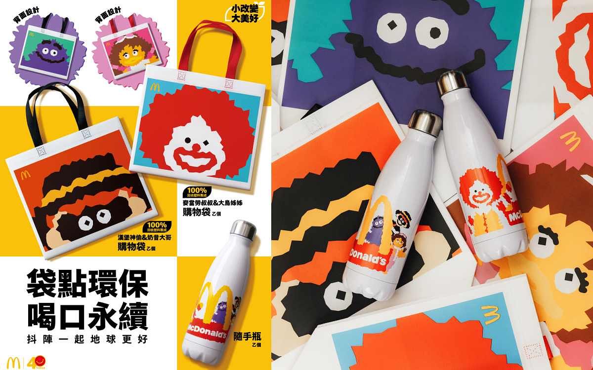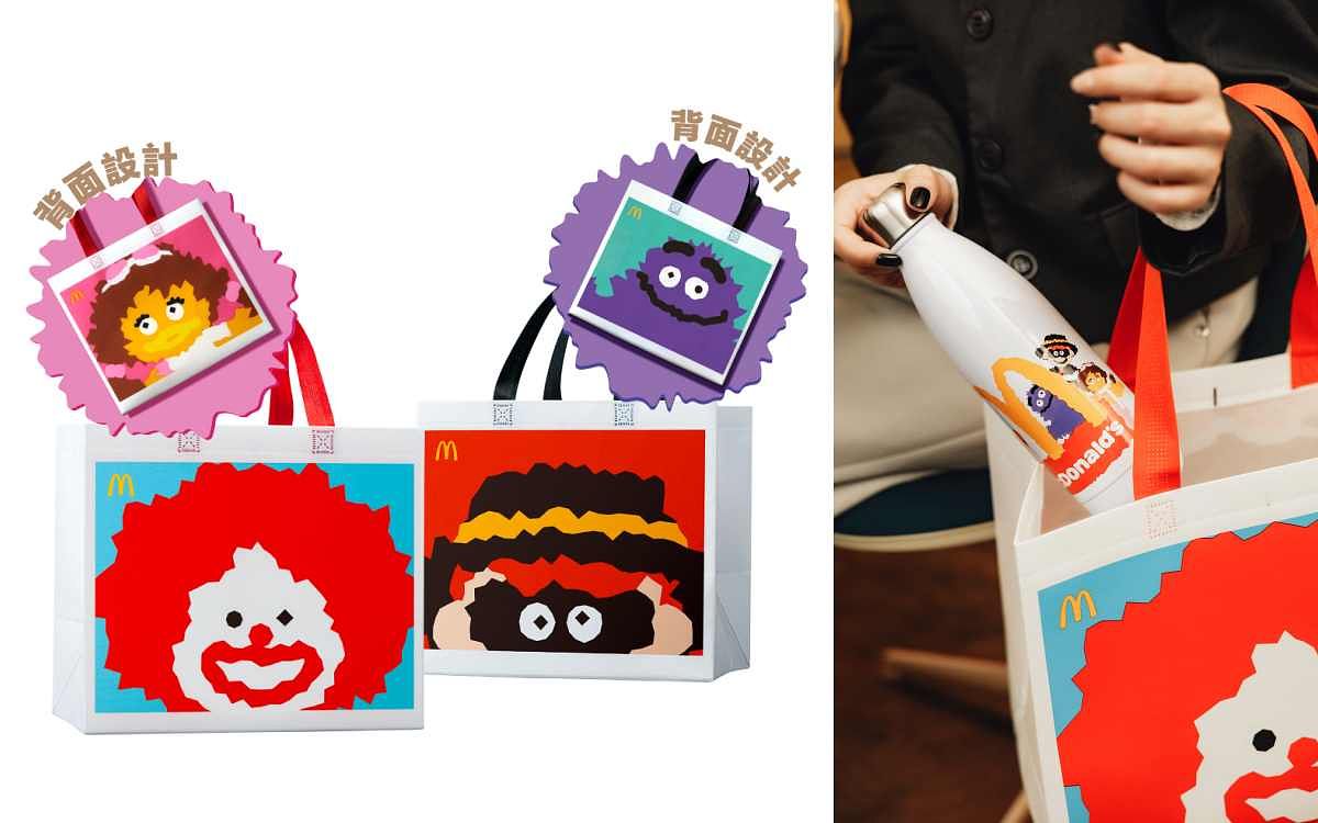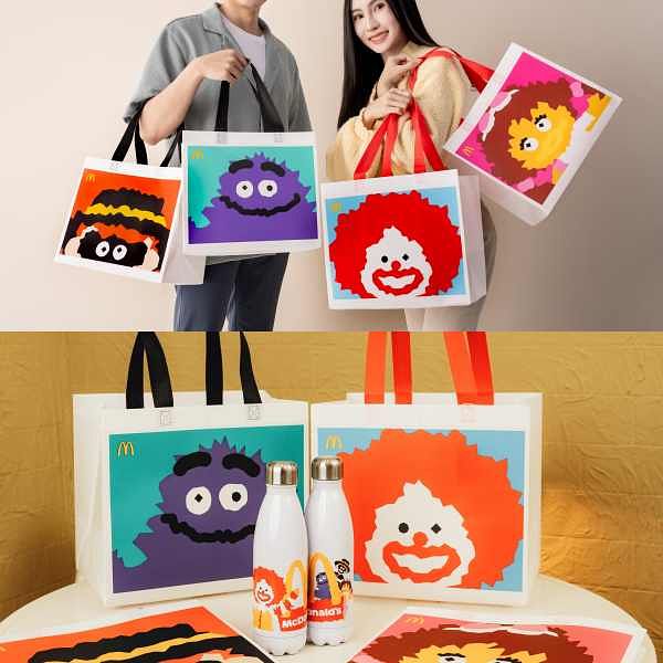 「麥當勞叔叔與好朋友們 抖陣一起」 購物袋由100%回收塑料製作而成,款式分別為「麥當勞叔叔與大鳥姊姊」、「漢堡神偷與奶昔大哥」,大容量的設計,就是希望透過「轉廢為材」與重複使用,減少資源浪費,消費時輕鬆為環境永續盡一份心力!「麥當勞叔叔與好朋友們 抖陣一起」購物袋售價59元,4月17日上午11:00起至5月14日(或售完為止)正式開賣,全台限量5萬個。