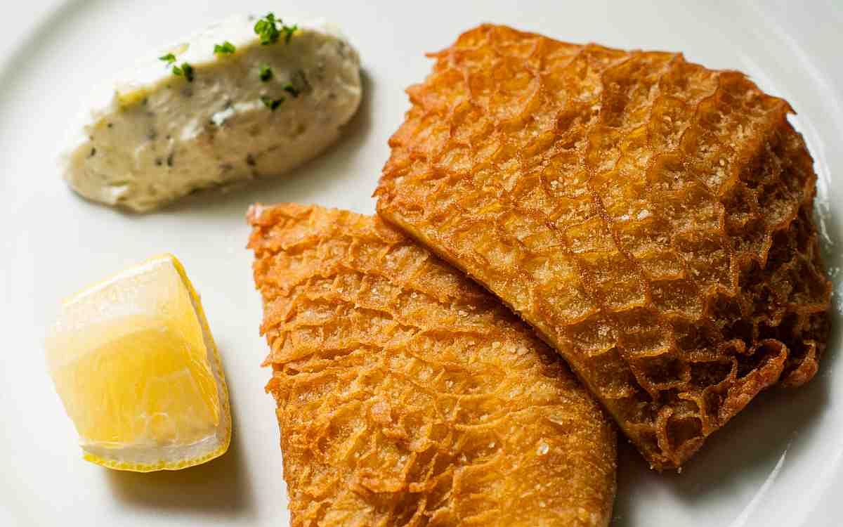 在南法里昂傳統名菜中,Tablier de Sapeur 工兵圍裙,是每一家Bouchon小館絕對必備的經典料理,也是最能代表里昂菜豪邁濃郁風格的標誌性菜餚。BeApe遵循傳統作法,用白葡萄酒、杜松子等香料浸泡醃漬,小火燉煮後再迅速撈起冰鎮,讓大塊的蜂巢牛肚保持滑軟口感,最後裹上薄粉油炸到外皮金黃、格紋漂亮起立的蜂巢牛肚,一碰到牙齒的瞬間就能感受到油炸酥香,裏頭牛肚依然軟嫩,水潤中帶白酒香氣。
