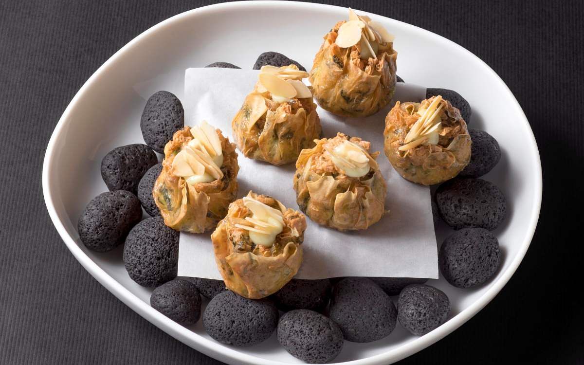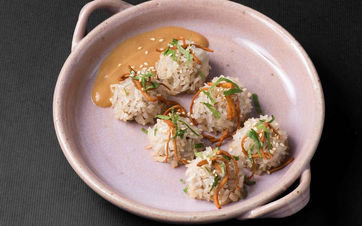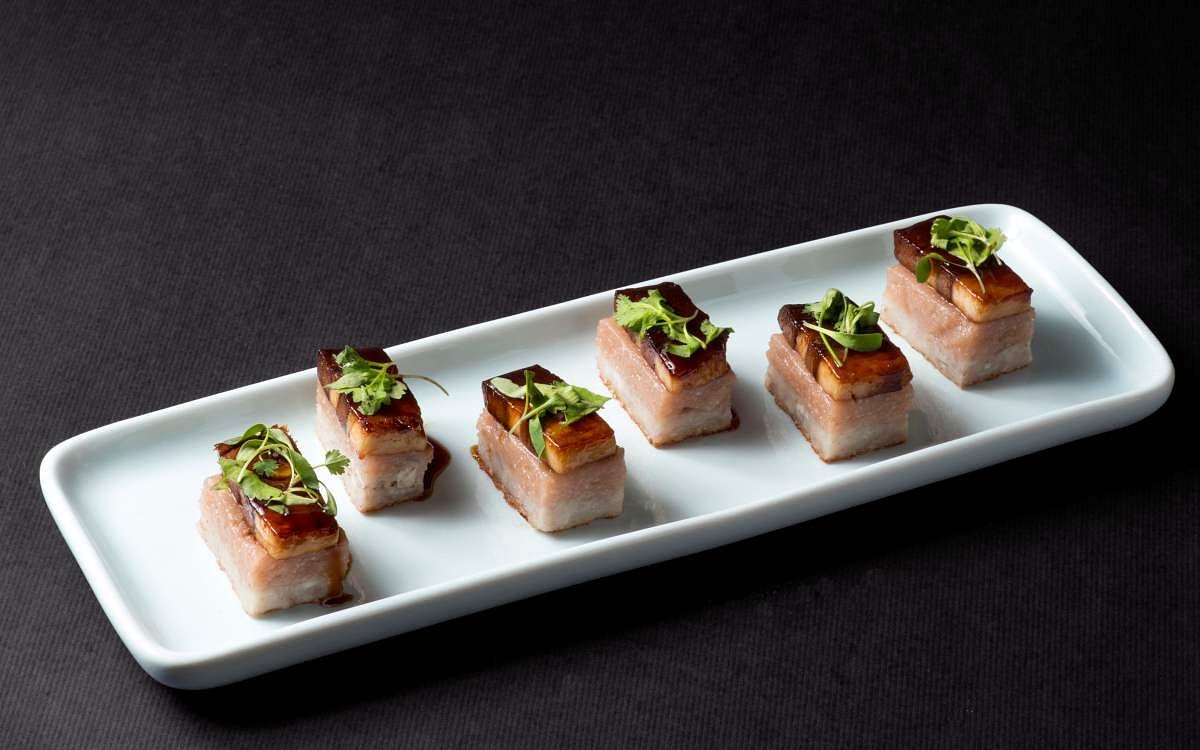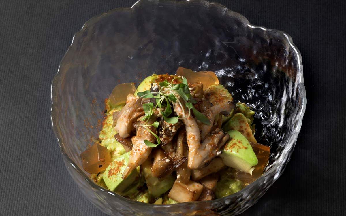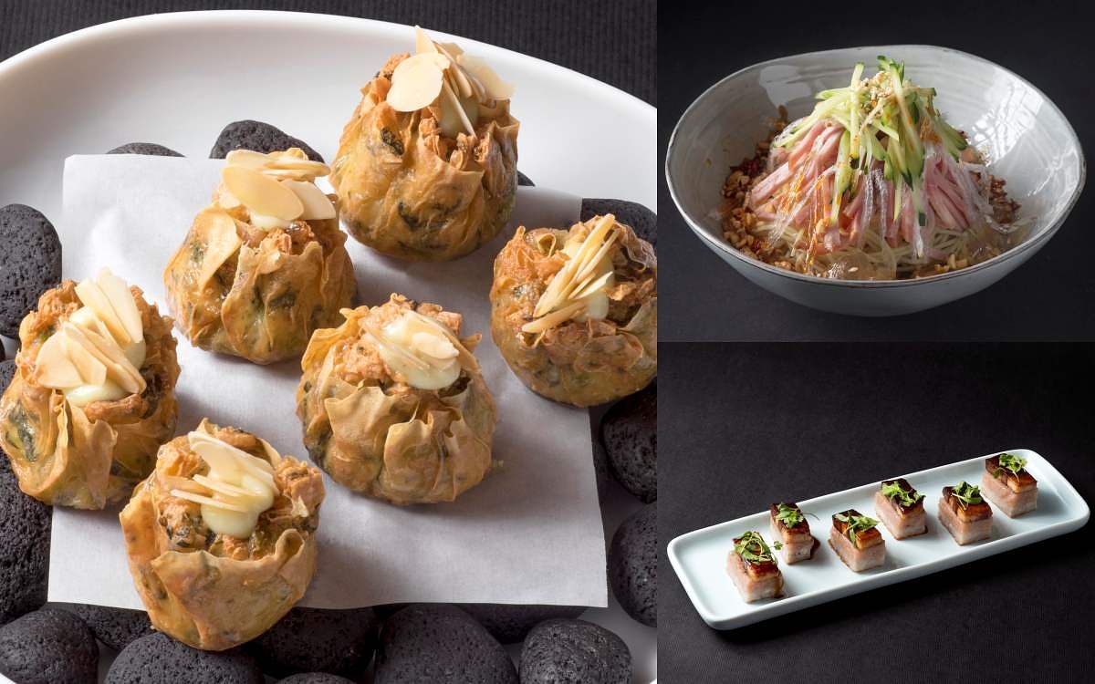 別具日式風味的「柚子胡椒酪梨野菇」將油脂豐富的酪梨搭配日式風味的柚子胡椒,以及滑口的野菇,並以東方美人茶凍、七味粉和麻油點綴,從沒想過的組合,卻創造出令人驚奇的美味,每一口都有麻油香與柚子胡椒清新爽辣的味道,舌尖還帶有微微的茶香,絕妙的風味讓人上癮。「杏仁雪菜百頁」則是經典江浙菜雪菜百頁包入千張皮中以燒賣的形式呈現,入鍋油炸,起鍋擠上畫龍點睛的芥末醬及放上增加口感的杏仁片,將傳統老菜變成小巧的點心,讓人愛不釋口。