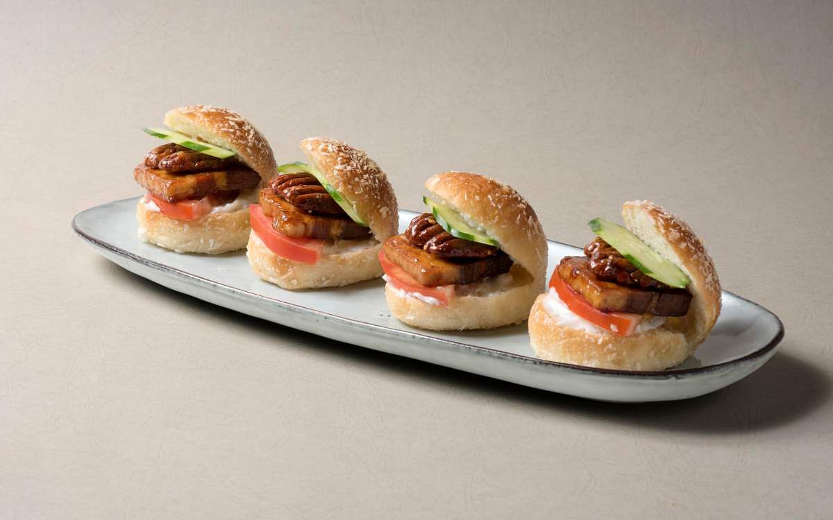 主餐的部分有「胡桃培根營養三明治」,基隆廟口著名小吃「營養三明治」的變形,將楓糖煙燻培根及番茄、黃瓜與美乃滋等營養三明治的必備元素,夾進自製布里歐麵包中,並灑上麵包粉增加脆口的口感,不油不膩又帶有煙燻醬汁的香氣及楓糖的甜,風味層次更升級。夏天必吃的「紅油胡麻天使涼麵」,特選天使細麵搭配無酒精啤酒滷過的素火腿及特製的無酒精啤酒凍,用青辣椒粉、柚子粉、芝麻去調製的油潑辣籽,讓香氣及辣味更凸顯,清爽的無酒精啤酒凍中和了醬汁的辣感,洋菜絲讓整體更為爽口,花生碎增添香氣及口感,讓蔬食者夏日也可以大吃涼麵。