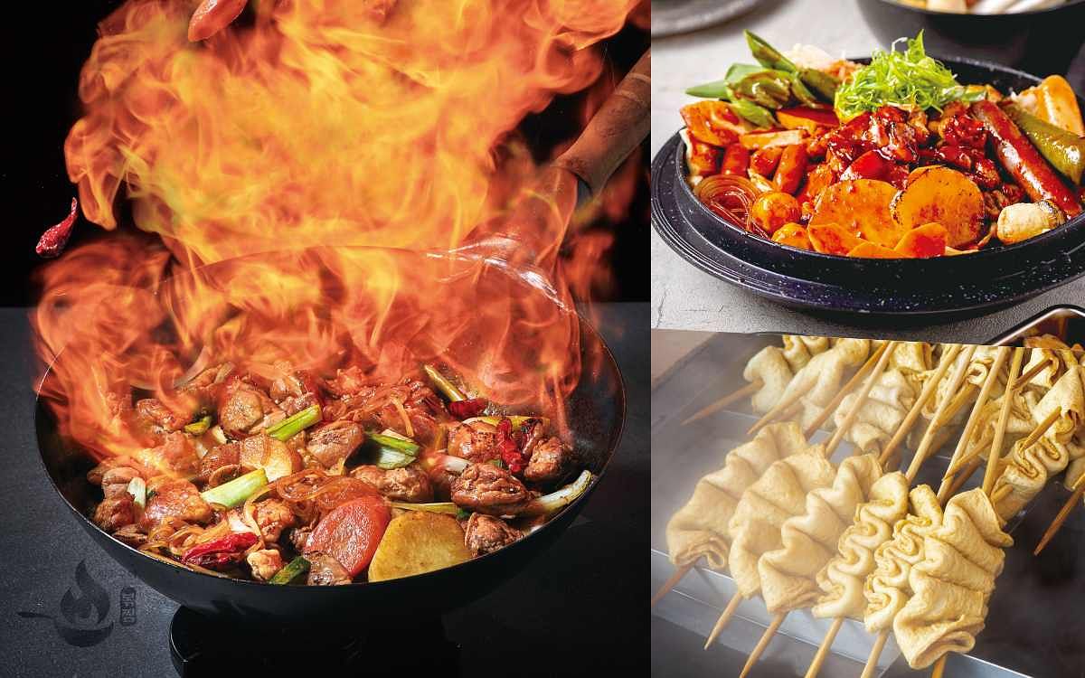 圖片來源:甩鍋雞「甩鍋雞」以炒雞為主打餐點,保留韓國傳統的烹煮方式,使用新鮮的雞肉及高麗菜、馬鈴薯、年糕等各式蔬菜食材,特別以甩鍋的方式大火翻炒,透過兩道炙燒工序,快速高溫烹調讓雞肉皮脆焦香,也保留食材原始鮮味,最後再加入韓國原裝進口的特色醬料,同時呈現了燉及烤的料理美味,還原韓國的道地風味。炒雞口味有5種,炒豬則有2種口味,分別為「BBQ醬炒雞」、「蜂蜜醬香雞」、「經典春川雞」、「麻舌辣喉雞」、「狠角色辣雞」、「辛奇泡菜豬」、「韓流粉紅豬」,每款皆使用韓國原裝進口醬料製作,還原在地風味。「甩鍋雞」另採用半自助式吃到飽方式,主菜炒雞採現點現炒,炒至8分熟後上桌,並在自助吧準備各種食材配料讓消費者可以自由取用加入燉雞中烹煮成美味料理,讓顧客不僅可以完全依照自己的喜好調整菜色,一鍋好幾吃能盡情享受自己親手料理的樂趣。