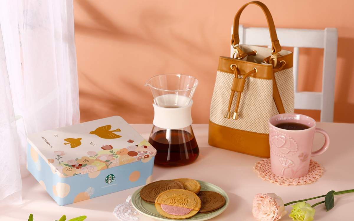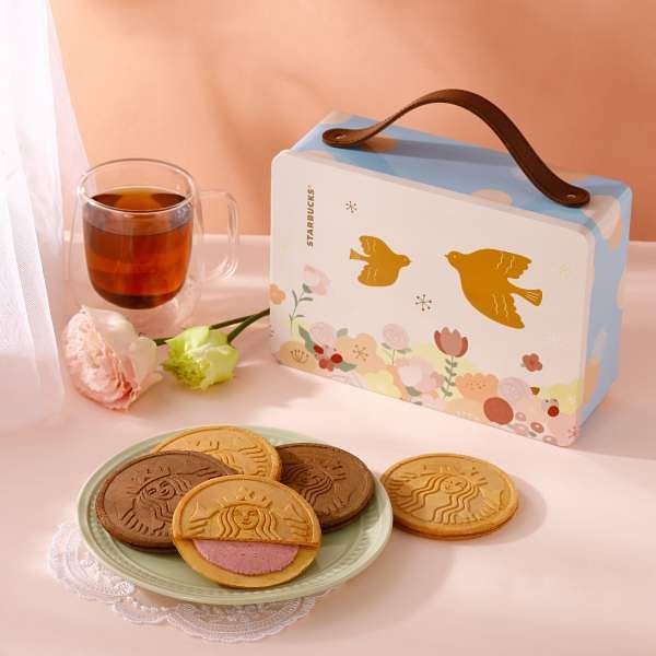 圖片來源:星巴克 食品禮盒首推「粉漾綜合法蘭酥」手提禮盒,內含新上市莓果風味法蘭酥、以及經典海鹽焦糖法蘭酥,酥脆外皮夾上綿密內餡,甜而不膩的美味,享用完畢還可將溫暖手繪感設計的鐵盒留下,用來收納各種蘊含美好記憶的小物或生活用品。