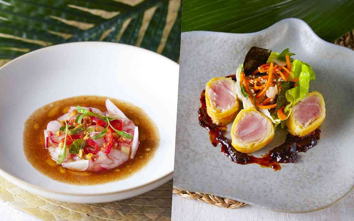 圖片來源:BeGood「Chef Kin」林明健顧問在南洋風味基礎上結合台灣在地食材運用,獻上冷前菜「胭脂蝦塔塔、蓮霧、花生、羅望子醬汁」嚴選宜蘭大溪漁港現流胭脂蝦,以胭脂蝦的軟嫩、新鮮蓮霧丁、花生顆粒體現口感分層,搭配自製羅望子醬汁,透過檸檬汁和魚露增添的酸鹹平衡,將蝦的鮮味提升至極致。熱前菜「黑鮪魚春捲、奶油萵苣、煙燻辣椒醬」薄脆春捲皮和高麗菜包裹屏東東港黑鮪魚並以200度高溫油炸黃金90秒,同時保有鮪魚生食口感與酥脆外皮,結合焦糖炒乾辣椒、魚露、檸檬汁後呈果醬狀的煙燻辣椒醬,魚肉沾附醬汁感受輕盈解膩的食用體驗。