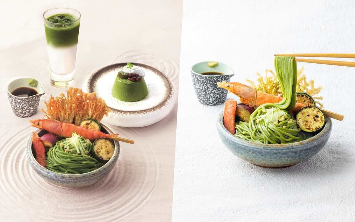 圖片來源:王品集團以和風料理套餐擄獲消費者味蕾的「陶板屋」,8月底前,可品嚐到與「一〇八抹茶茶廊」共同研發的「一〇八宇治抹茶麵佐海老野菜」,將抹茶入麵,滑順細緻還散發淡雅茶香,搭配酥脆炸蔬菜與大蝦天婦羅,創造日本經典美味,套餐加購價99元即可體驗,單點原價199元。