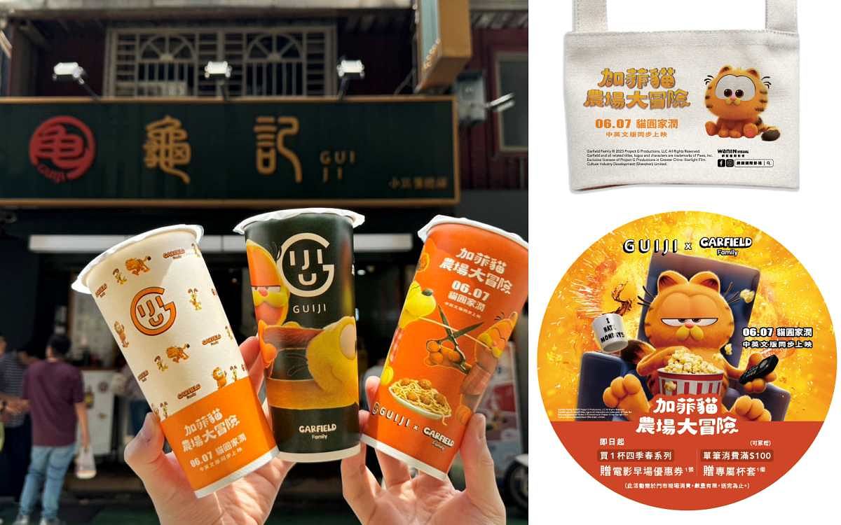 龜記茗品首次與網銀國際影視攜手人氣動畫電影《加菲貓:農場大冒險》電影宣傳活動,推出一系列《加菲貓:農場大冒險》限量杯身和飲料提袋,以加菲貓圖案設計的杯身,可愛又具有紀念意義。