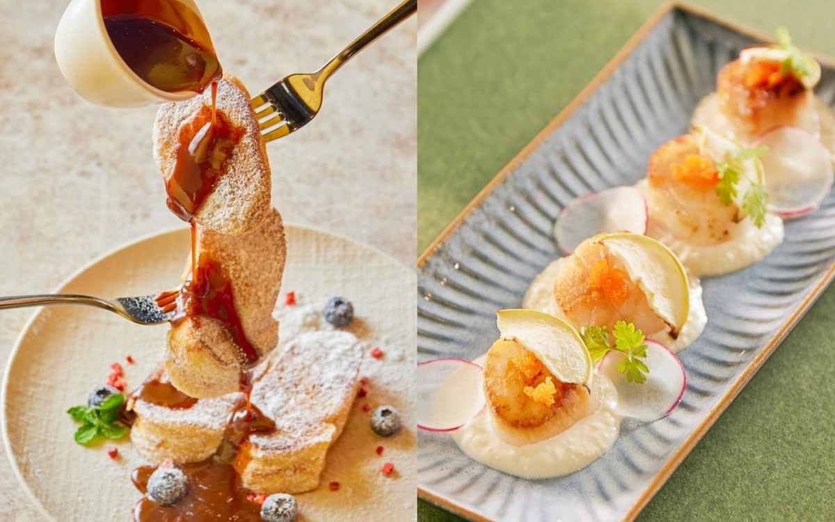 圖片來源:ST. ALi 怎麼跟上這波快閃熱潮?快閃期間也可以以咖啡佐餐,融合西餐與亞洲特色混搭的創意料理並給人驚喜連連的口感是TOK盡興食光夥伴們的共同信仰,此次特別推薦手打泰奶軟法吐司,桑桑桑的軟法吐司鍋煎焦香後,撒滿雪白糖霜,最後淋上主廚手打的正宗泰奶醬,濃郁奶香與外酥內軟的吐司在唇齒間形成完美的二重奏,特別建議搭配香醇的澳白咖啡(Flat White),麵包甜點控將為之瘋狂。熱愛探索味蕾極致的饕客,則推薦TOK的香煎干貝青蘋果乳酪醬或炸鮭魚球,搭上長黑咖啡(Long Black),熱情辛香的黑咖啡風味一次在口鼻舌間展開!