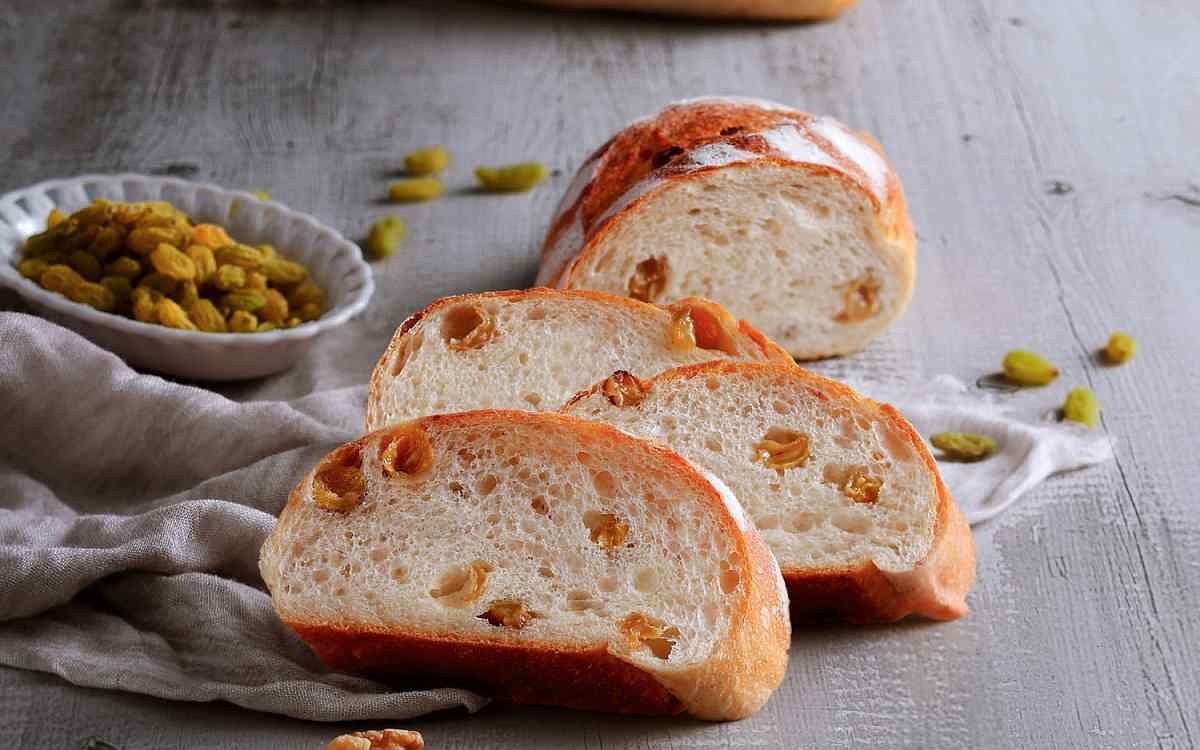 麵包整體扎實有嚼勁,加入裸麥粉,更加乘小麥的香氣,每口都能品嚐出純粹的味道。切開後即能看到青提⼦果乾內餡,酸甜風味與香脆核桃的交織美味,簡單搭一杯牛奶,立即置身在輕鬆的歐式氛圍中。