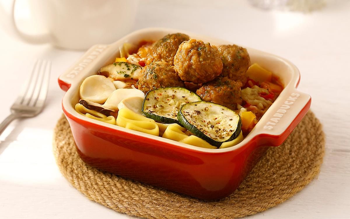 圖片來源:星巴克備受歡迎的星巴克獨特的生義大利麵體,本次推出新口味「茄汁牛肉丸生義大利麵」,以特製的皮帶麵工法製作,選用完熟番茄與大量蔬菜燉煮,融入來自巴拉圭放牧飼養的牛背肩肉,微酸且帶有牛肉香氣的紅醬,搭配以牛肉及少許豬肉仿照手工擊打法製成的肉丸,豐富多層次的風味讓人回味無窮。