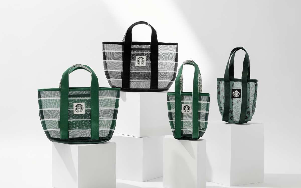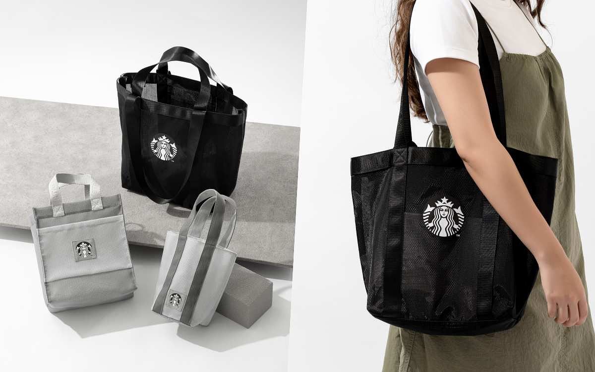 圖片來源:星巴克以經典的灰色、黑色搭配網格材質推出「透灰網格女神雙杯隨行杯袋」、「透灰網格女神隨行杯袋」和「透黑網格女神提背袋」,多款尺寸及袋型不僅實用且滿足個人不同需求,袋身細節以不同的深淺灰色、黑色拼接,提把以帆布及緹花工藝呈現,點綴整體設計,為包款增添個性及時尚感,為夏天最值得入手的單品配件包款。