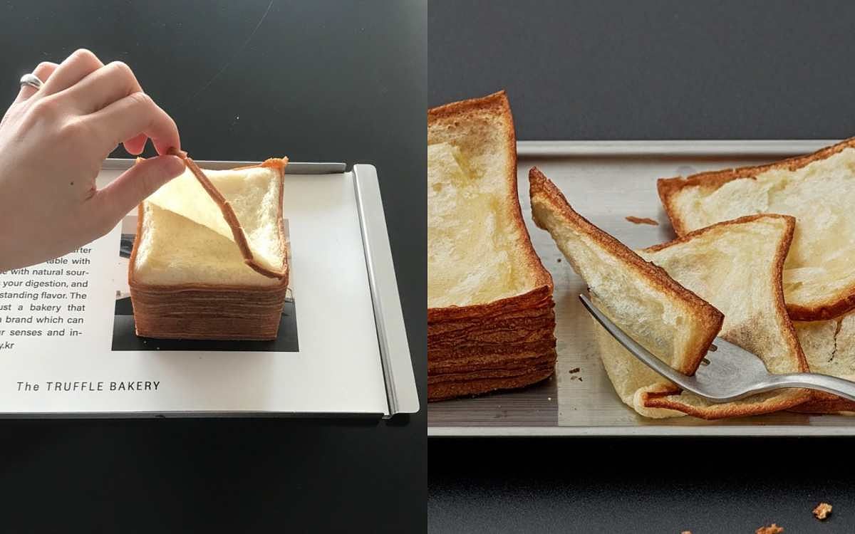 圖片來源:The TRUFFLE BAKERY 和台灣早餐店的「厚吐司」不同,近期於韓國爆紅的「紙巾吐司」薄如紙片,靠著時尚的外型和新奇的口感,吸引大批食客的注意,成為烘焙界最夯的美食話題。此次受邀來台快閃的The TRUFFLE BAKERY正是韓國「紙巾吐司」的發明人,透過獨特的麵粉比例以及烘焙手法,The TRUFFLE BAKERY創作出擁有吐司般正方外型、丹麥麵包般酥脆外皮、以及湯種麵包般柔軟口感的全新品項,食用時可以像抽紙巾一樣、層層撕開入口,片片輕盈軟綿、奶香十足,現場銷售的經典奶油以及巧克力口味都與韓國總店同步,不用遠行飛往首爾,也能在台享用。