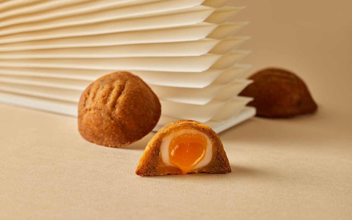 圖片來源:和日 隨著中秋節越來越近,和日甜點也將推出中秋限定禮盒流心秋栗,栗子造型的栗子燒果子麵糊中,結合了以自製的麻糬皮包裹的鹹蛋黃流沙餡,復熱吃蛋糕體洋溢濃濃的栗子香甜,口感鬆軟,而麻糬的黏Q和鹹香微甜的流心內餡,層次豐富,有別於一般傳統月餅。
