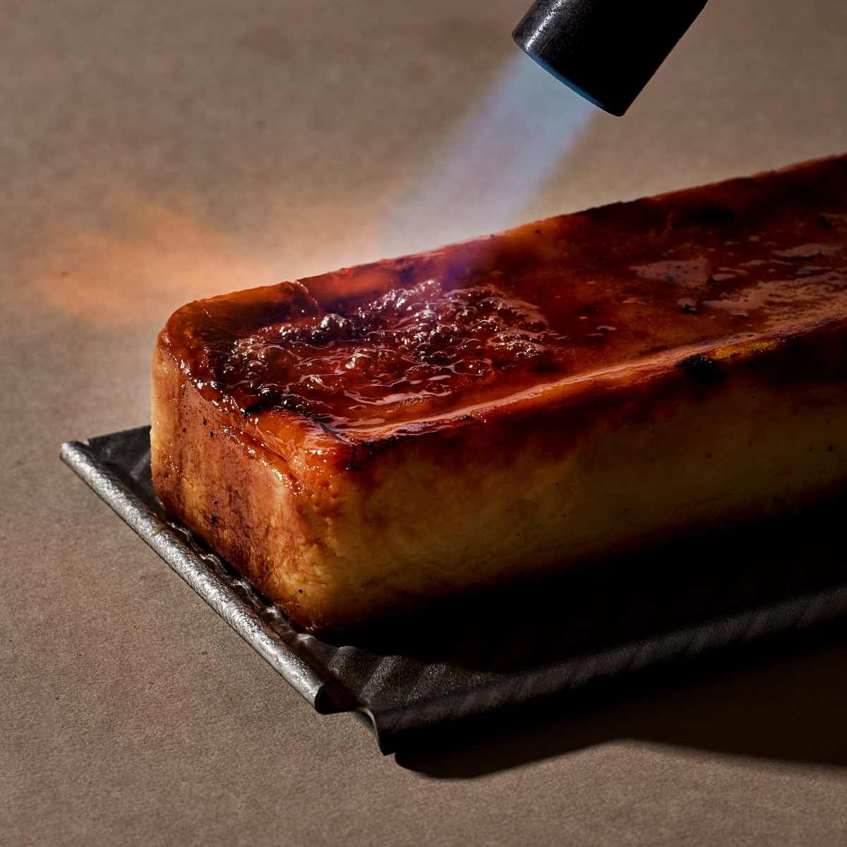 圖片來源:和日 由專程赴日學習的主廚所設計,以即便冷凍仍不顯硬的乳酪蛋糕配方製作,製作完成後,表面再撒上三溫糖和中雙糖,以高溫500~600度炙燒成焦糖色,每一顆須由師傅手工製作,產量有限,可以冷凍著品嘗,或者冷藏退冰後食用,冷凍時像冰淇淋和冷藏退冰後滑順香滑,再加上焦糖香氣和微脆感,增加口感層次,可以輕鬆吃完一整個。