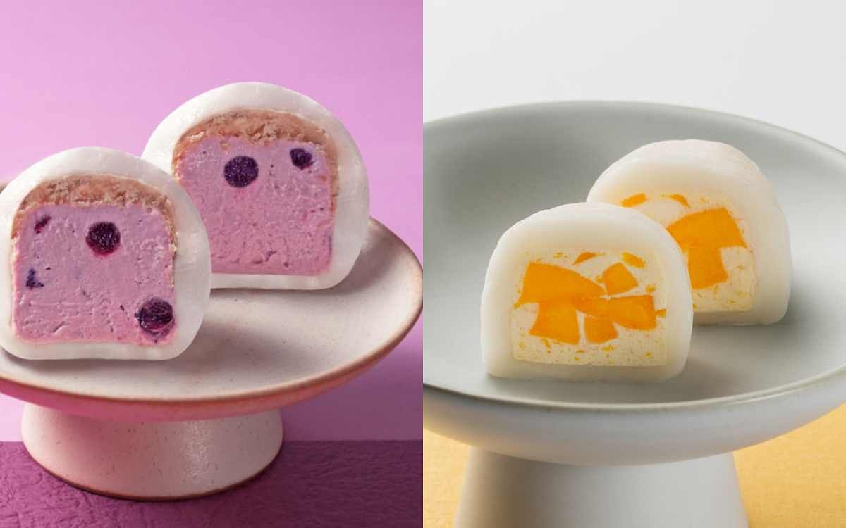 圖片來源:和日 夏季新上市的夏日芒果大福是以新鮮現切的愛文芒果熬煮成芒果醬之後,再以切丁的愛文芒果丁搭配香濃法國乳酪餡,濃郁的奶味中散發愛文芒果的香甜,帶些Q度和米香的麻糬皮帶出不同的口感和層次,完全讓人沉浸在芒果的美味之中。而藍莓果大福,在風味上多添加了檸檬增添香氣之外,也完美的結合藍莓莓果和乳酪醬,柔順的風味之外更解膩。