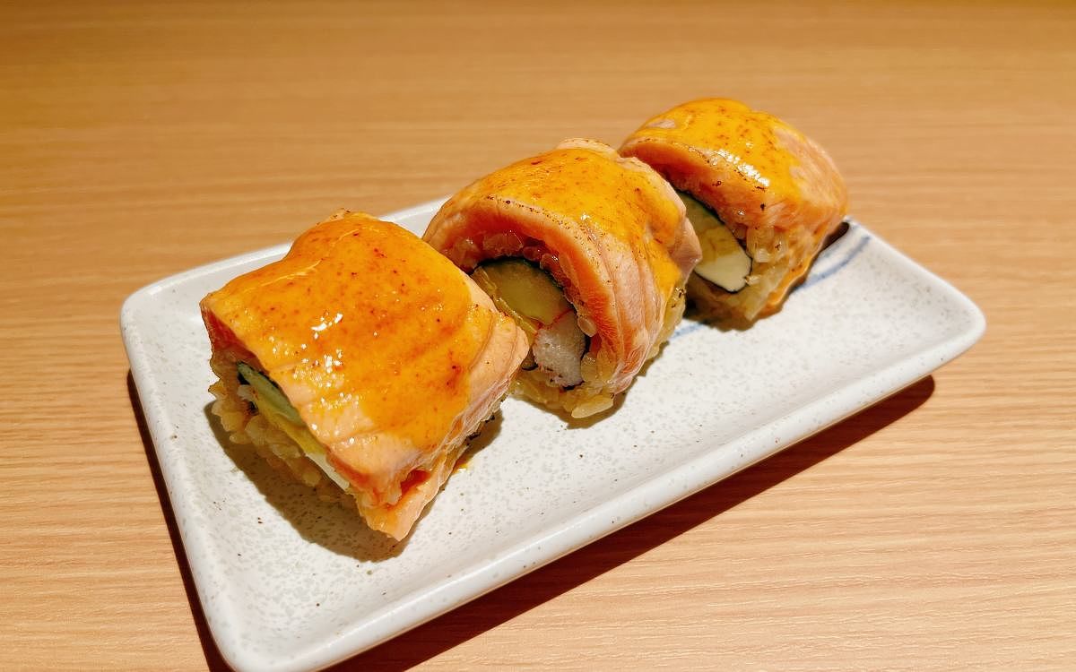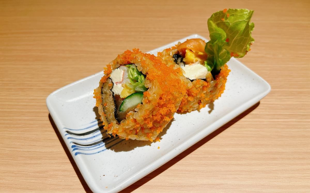 飛魚卵的爽脆口感加上黃瓜的清爽和蟹肉棒及鮭魚的鮮甜相互融合,搭配上奶油乳酪的濃厚風味,帶來清爽不膩口的味覺饗宴。