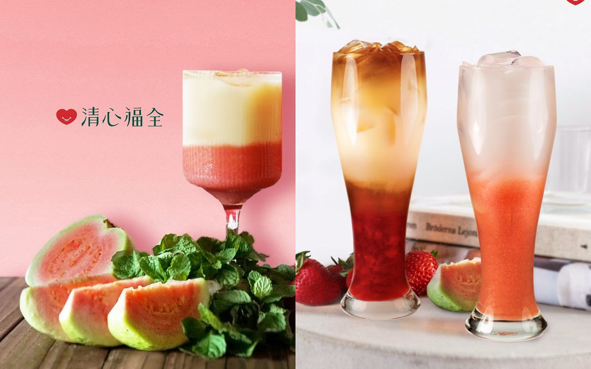 清心福全以台灣在地紅心芭樂為主角,推出3款果香新品:「紅心芭樂檸檬」由新鮮現榨的檸檬原汁,襯托出紅心芭樂淡雅香氣。另外一款「紅心芭樂優多」以紅心芭樂的特殊口感,搭配滑順優多相輔相成,「芭樂百香果艾思」則特別加入了酸甜濃郁的百香果汁,與紅心芭樂製成綿密冰沙,達到酸甜完美平衡的多層次口感。