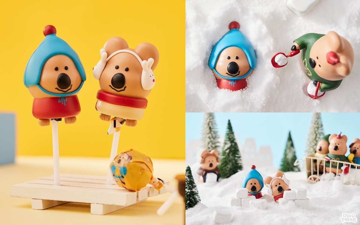 圖片來源:SUNFRIEND MOUTH 本次推出兩款令人捨不得拆開的「DINOTAENG 公仔棒棒糖」,主要角色 QUOKKA 戴上可愛的藍色毛帽跟兔耳罩,滑起雪來可愛的樣子,在炎炎夏日的七月讓人倍感消暑,裡面的汽水風味棒棒糖也有多款包裝,佈置在辦公桌或是書桌前,讓絲們的日常多一點可愛,隨時保持療癒好心情。