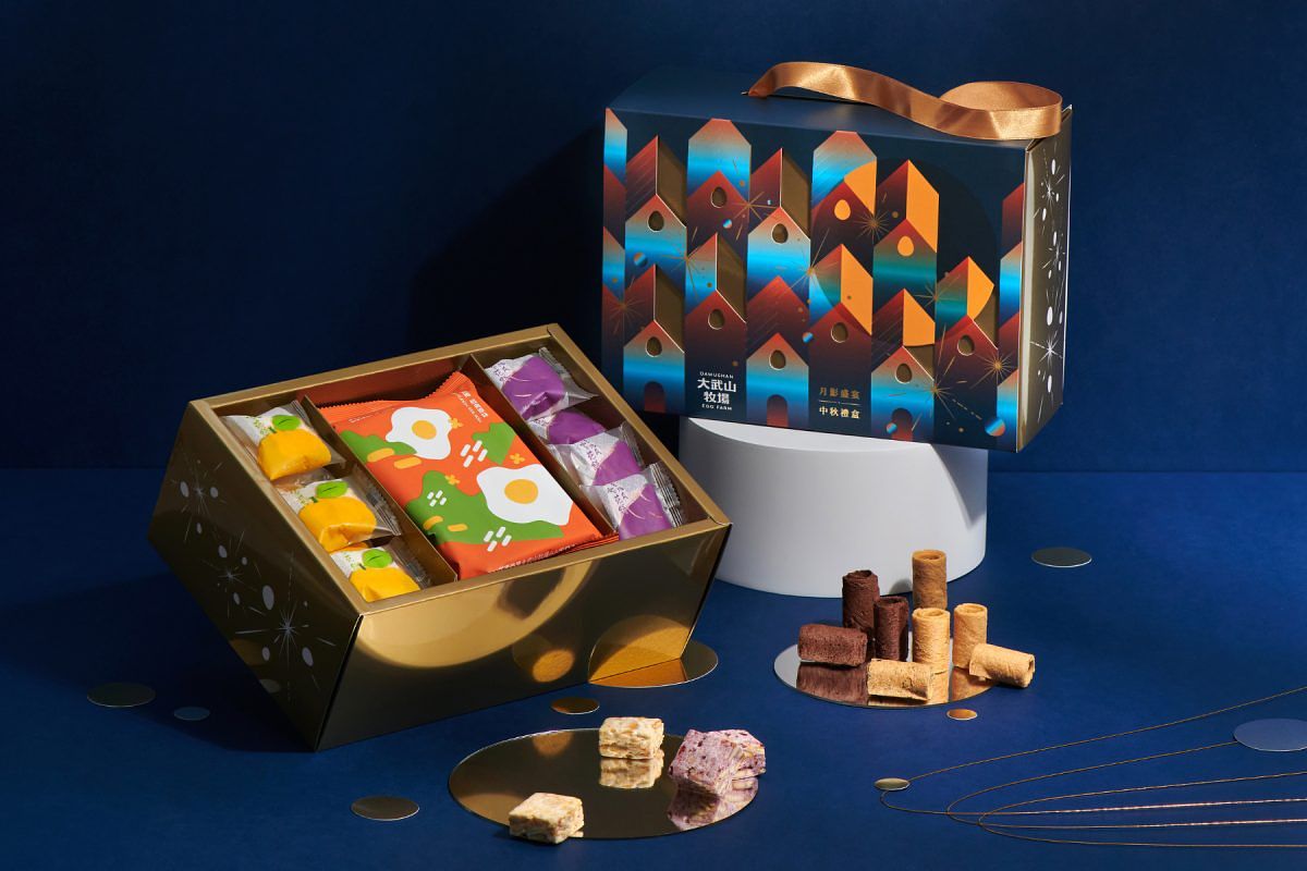 今年《大武山牧場》限量推出「月影盛宴」 中秋禮盒,將四種口味的蛋捲加上兩款雪花餅的澎湃組合,以夢幻又帶點童趣的蛋形挖空的視覺設計,呈現出月影與城市燈光交織的夜景,打開禮盒彷彿走入充滿幻想的世界。禮盒內含小朋友愛吃的經典原味、長輩必推的紅玉紅茶、吃貨無法抵抗的法式可可,以及抹茶控熱愛的靜岡抹茶等四種熱門口味蛋捲,一次滿足蛋捲控的心願!