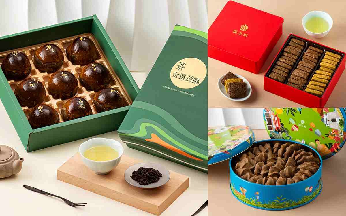貓茶町以「全台最黑蛋黃酥-鐵觀音茶金蛋黃酥」聞名,今年中秋加入嚴選北中南各地風味茶種的「茶香三劍客」,以及融合台灣指標性地景、外盒重新改版設計的「台灣茶曲奇」兩款人氣品項;此外,同步推出融合傳統法式點心與在地特色茶結合的新品「茶金蝴蝶酥」,並與「鐵觀音茶金蛋黃酥」系列禮盒搭配規劃滿盒送、加價購優惠方案。