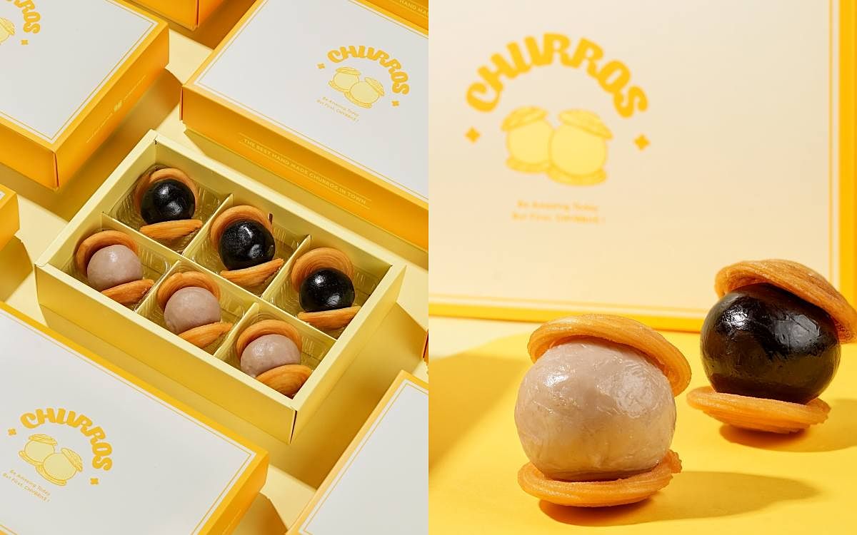 人氣吉那圈CHURROS「吉那月餅」中秋限定回歸囉!每顆吉那月餅都是手工製作,從揉麵團、餅皮定型到下鍋油炸,沾著肉桂糖粉的酥脆餅皮、再夾上鬆軟綿密的芋泥,中間還包覆著一顆鹹蛋黃鹹!今年除了經典款【芋泥鹹蛋黃】,還推出全新口味【可可豆沙鹹蛋黃】,微苦的可可與豆沙以完美比例巧妙,在中間同樣包覆著鹹蛋黃,層次豐富。