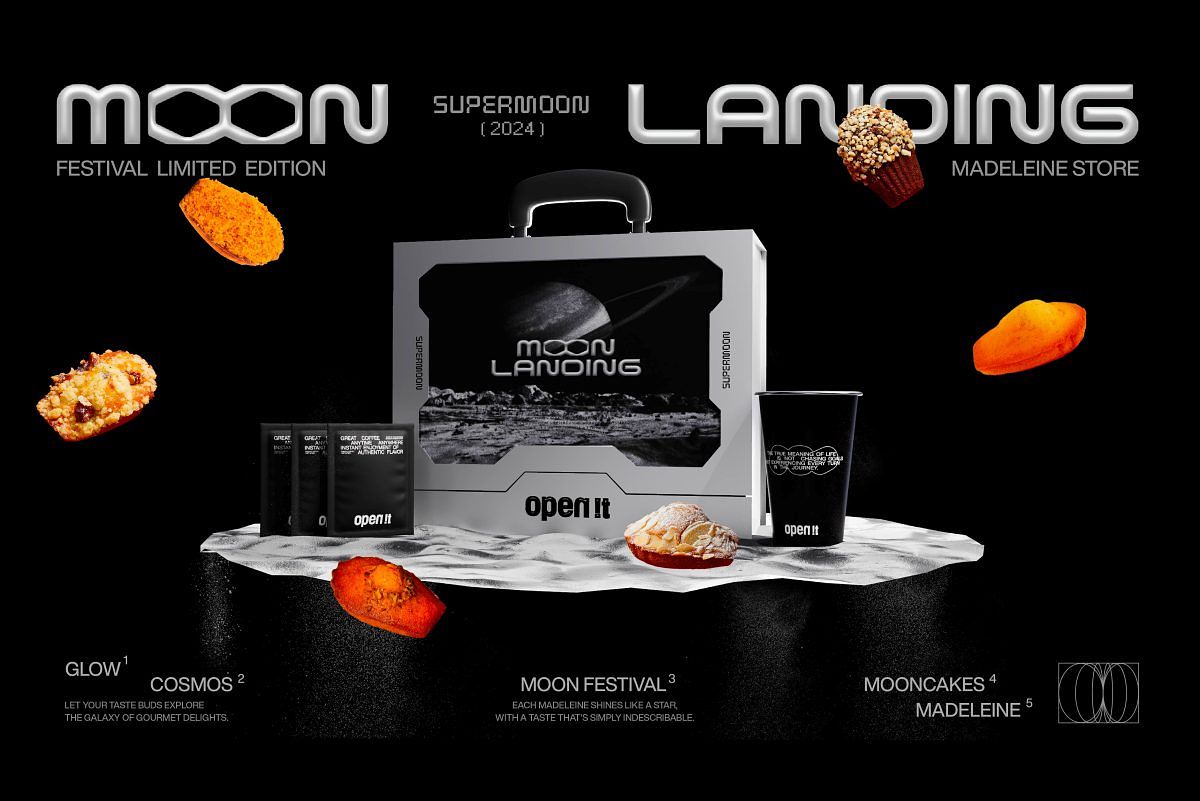 瑪德蓮專門品牌「open it.」,以獨到的口味設計顛覆法式經典瑪德蓮,2024年全新創作「登月計劃」中秋限定禮盒,以太空艙為禮盒設計概念,打開來是一顆顆閃閃發光的獨特瑪德蓮,打造宇宙級的獻禮。
