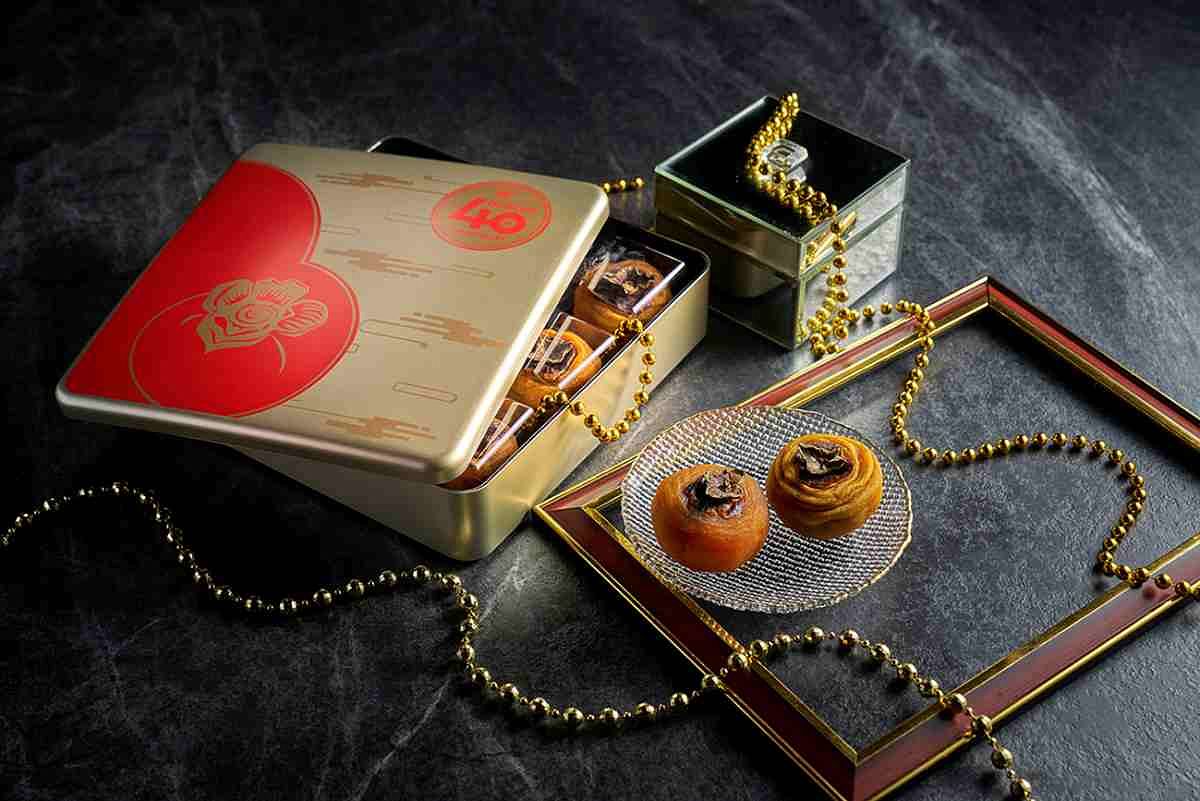 台北福華大飯店館內江南春、珍珠坊及點心坊三大餐廳,攜手推出「享月‧蘊藏 福華四十」中秋月餅禮盒,全系列共有四款選擇、多達16種口味,包括手工蘇式月餅、手作蛋黃酥及經典廣式月餅,還有限量僅700盒的福華獨創喜柿月餅。四十週年紀念版的禮盒設計搭配以「福華時光寶盒」為主題,融合包浩斯建築風格和象徵團圓的同心結標誌,別具珍藏意義。