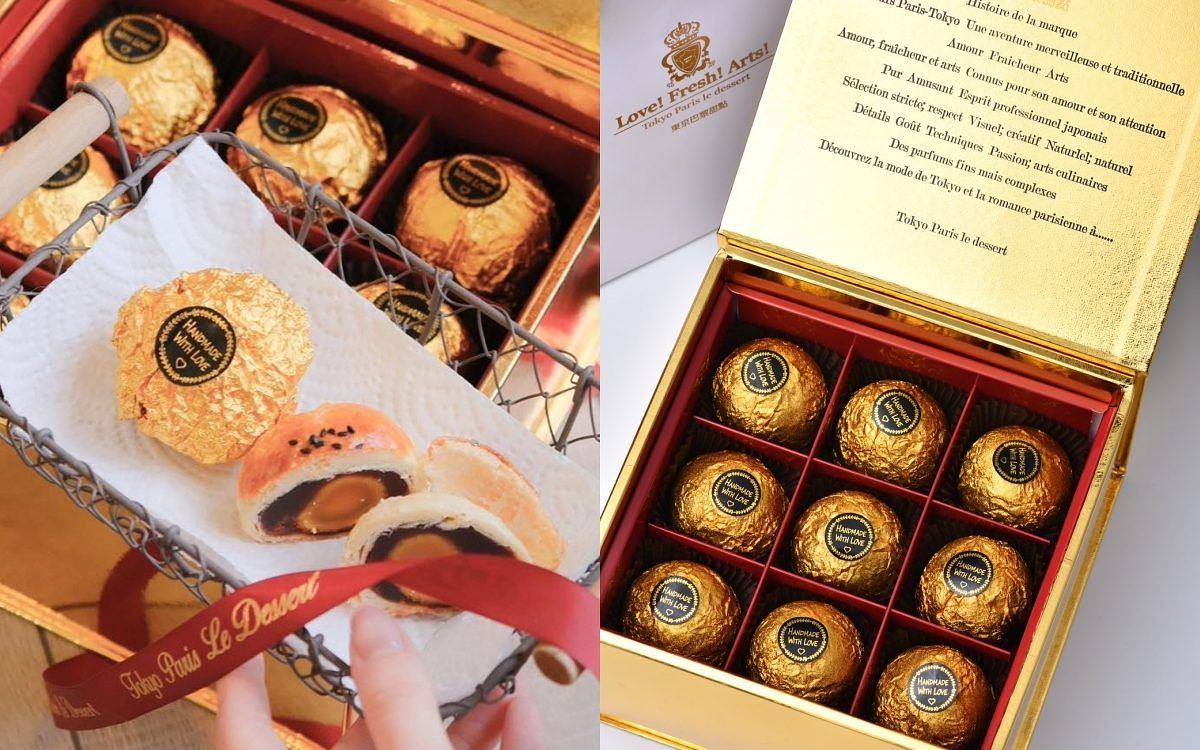 以彌月蛋糕自電商通路崛起、在網路上擁有超高人氣及評價的東京巴黎甜點,今年首度推出「金莎菠蘿蛋黃酥」升級版,優選台式食材、12道傳統工序、西點深厚功力融合而成,投入22公升鮮奶產出1公斤奶油,再歷經熟成,與在地優質紅豆與紅土鹹鴨蛋 ,打造蛋黃酥完美比例。每一顆蛋黃酥皆用黃金般閃爍的精緻紙張包覆保鮮,不論從蛋黃酥食材內餡揀選以及外包風格設計都充滿誠意。