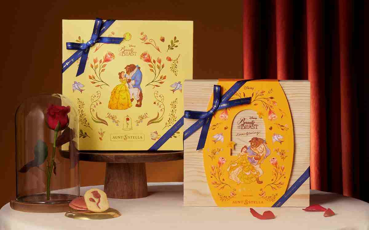 來自日本東京的手工餅乾名店Aunt Stella 詩特莉,今年推出迪士尼授權【美女與野獸】秋季限定禮盒:全新設計「月之漫舞-美女與野獸」採用最受歡迎的品牌經典松木盒,重現貝兒與野獸在舞池中翩翩起舞的經典場景;另一組書盒形設計「玫瑰花園-美女與野獸」以自然溫柔的鵝黃色呈現,象徵貝兒溫柔而堅毅的形象。