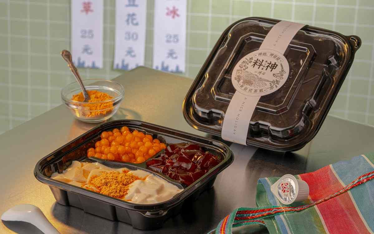 7月12日至8月4日限時開賣的「經典料神便當盒」,以透明蓋盒裝設計搭配品牌腰封,展現日常台灣便當的經典樣貌。內容物以每日手工現做的奶酪搭配豆花為主食,再讓消費者自由選配「草草組合」的草仔粿加嫩仙草、「粉粉組合」的粉粿加粉圓,或是「圓圓組合」的草仔粿加粉圓為配菜,最後每盒還會再附上逮丸麵茶粉與奶油球來提味,誠意滿滿的料神便當太值得入手。