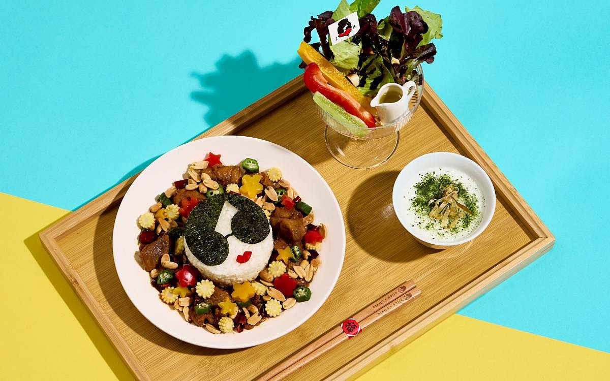 圖片來源:alice + olivia café說到中華料理又怎能少了熱炒呢?為了因應無法使用明火的限制,嚐遍了各種搭配後,最終找到最能還原快炒原味的口味,包括「沙茶牛肉」、「台式三杯雞」、以及追求無辣不歡的「宮保雞丁」口味,三款口味的擺盤中央皆有純手工裝飾的娃娃頭造型白飯,周圍點綴著星星與花朵造型的五色蔬果,並搭配新鮮生菜佐巴薩米克油醋,營養均衡,令人食慾大增。