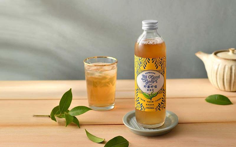 圖片來源:好菌好俊康普茶是⼀種由茶葉加上糖、紅茶菌,釀造⽽成的⼀種發酵茶,能促進消化、提供豐富維 ⽣素,尤其在好萊塢明星瑪丹娜、女神卡卡帶動下,成為歐美炙⼿可熱的新潮飲品。「All Good Gene’s 好菌好俊康普茶」依循傳統釀造⼯法,以最嚴謹的製程掌控每⼀個釀造細節,採收發酵後充滿活菌的康普茶。尾韻中彌漫著淡淡的茶⾹,酸甜裏似乎又穿透著⼀絲蜂蜜的甜味,多層次的風味堆疊岀⼜感豐富的經典原味康普茶。