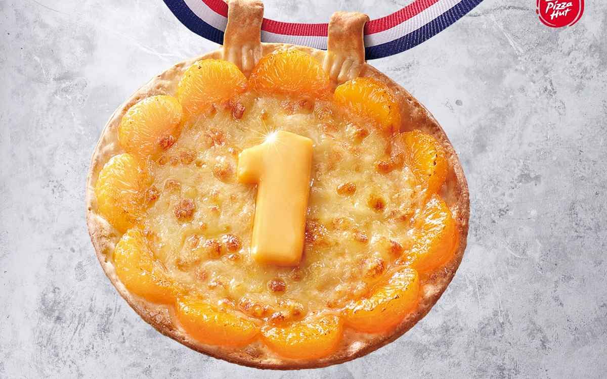 圖片來源:必勝客選手奪金時興奮地咬著金牌是每次賽事最動人的畫面之一,這次「必勝五環奪金饗宴」裡也有真的可以咬的「超桔金牌比薩」,而且還很好吃!由象徵大吉大利的桔瓣與金黃色的香濃起司交織而成,祝福選手們能夠締造一「桔」棒的傳奇戰績!
