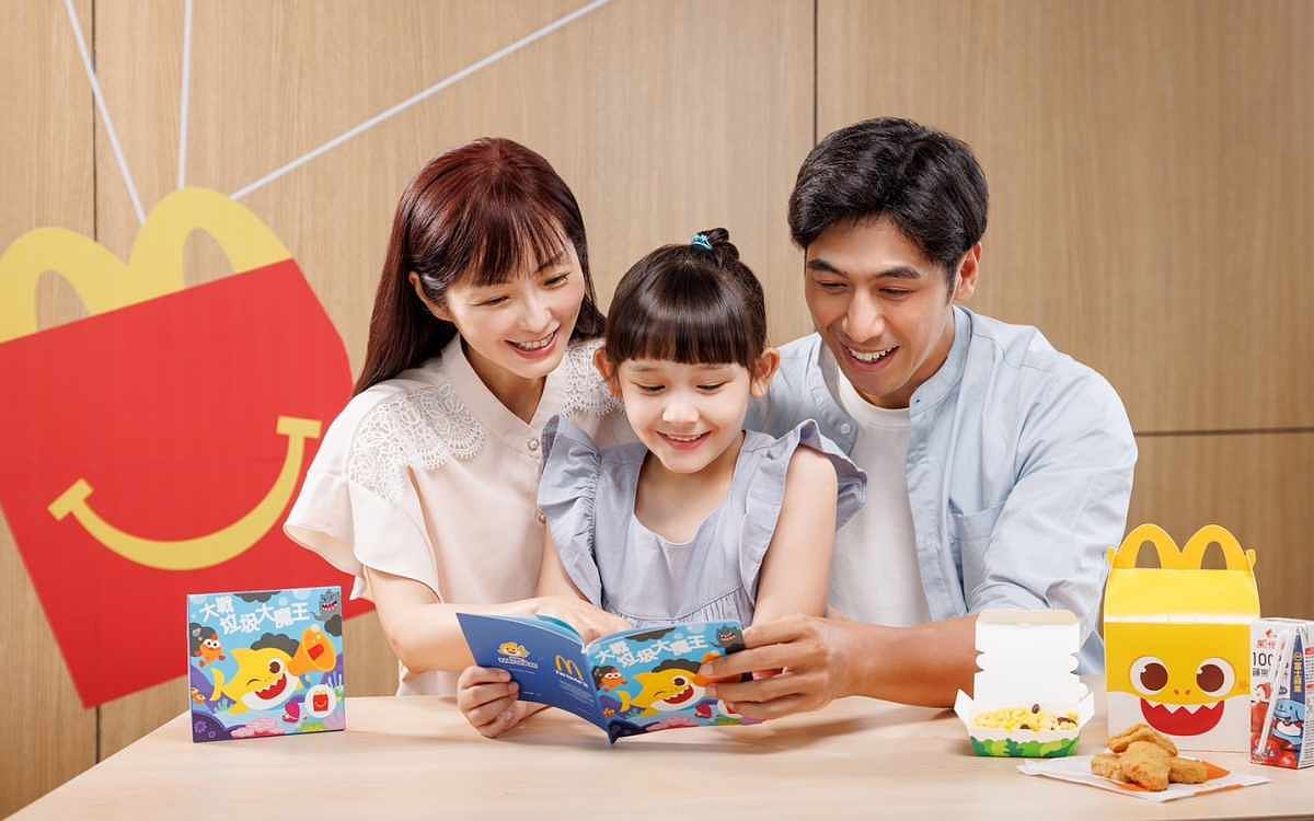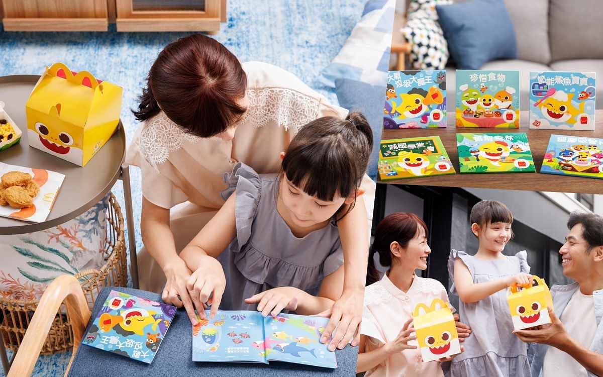 麥當勞持續以多元且趣味的方式推廣親子共讀,今年暑假攜手The Pinkfong Company旗下的超人氣Baby Shark鯊魚寶寶聯手推出環保主題讀本,透過一系列有趣的故事,讓孩子與家長一起瞭解環境永續與保護地球的重要性。8月1日上午10:30起至2025年1月,購買「Happy Meal」 麥麥盒四件組,即可獲得Baby Shark 環保主題讀本一本(限量供應,送完為止),全系列共6本,每月推出1本,主題包含:「大戰垃圾魔王」、「珍惜食物」、「節能鯊魚寶寶」、「減塑學堂」、「幫幫森林」、「塑膠吸管NO!」,「Happy Meal」 麥麥盒更將驚喜化身為Baby Shark的立體超萌模樣,邀請家長和孩子一起閱讀,與Baby Shark一起探索環保知識,開啟一場有趣的共讀旅程。