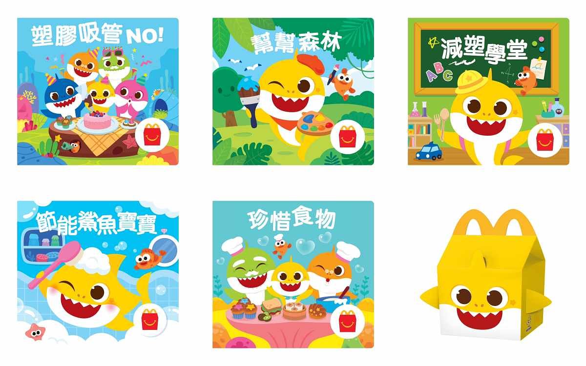 「Baby Shark環保主題讀本」:8月1日起至2025年1月止,購買「Happy Meal」 麥麥盒四件組,售價99元,即隨餐附贈「Baby Shark環保主題讀本」一本,限量供應、送完為止。