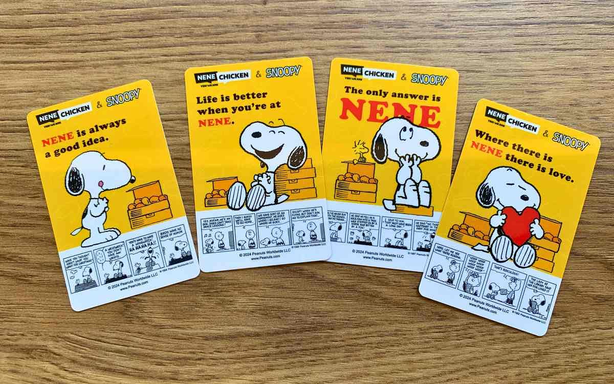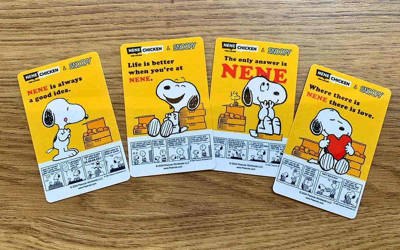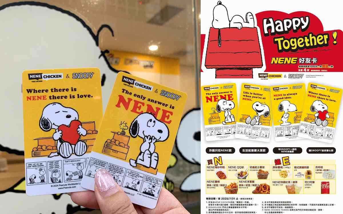 圖片來源:NENE CHICKEN SNOOPY 的忠實粉絲都知道,牠有著自信、喜愛天馬行空幻想的個性,牠風靡全世界、是最具知名度的巨星級狗狗,而巨星級的牠,最喜歡和牠的好朋友們一起上山下海、一起冒險、一起分享所有快樂的時光,這也和 NENE CHICKEN 的品牌核心「 Happy Together 」不謀而合 – 快樂的時間就是要和重要的人共度才會加倍快樂, 2024 年 8 月 1 日起至送完為止,只要至全台 NENE CHICKEN 門市單筆消費滿 1000 元,立即贈送 NENE 好友卡一張,一次推出 4 種萌翻款式、共限量 2000 張,每款卡面都有 SNOOPY 和 NENE CHICKEN 經典炸雞的互動,更有闡述了 SNOOPY 世界觀的 < 花生漫畫 > 小短篇,絕對是不論 SNOOPY 粉或是 NENE 粉都必須收藏的夢幻逸品,往後一年內持卡至全台門市消費享有買 N 送 E 專屬優惠 ( 詳細優惠內容請至官方網站或官方粉絲專頁參考 )、至 BONGOUSSE 門市消費享有韓米堡或杯飯配料五選一;每張不同設計的 NENE 好友卡不只讓人隨時會被可愛爆擊,還具有最高的收藏價值和實用性,活動期間蒐集完整 4 張好友卡上傳至官方專屬好友卡網頁,加碼再抽濟州島 SNOOPY GARDEN 獨家商品,邀請好朋友們一起來蒐集象徵友情的魔法小卡吧。