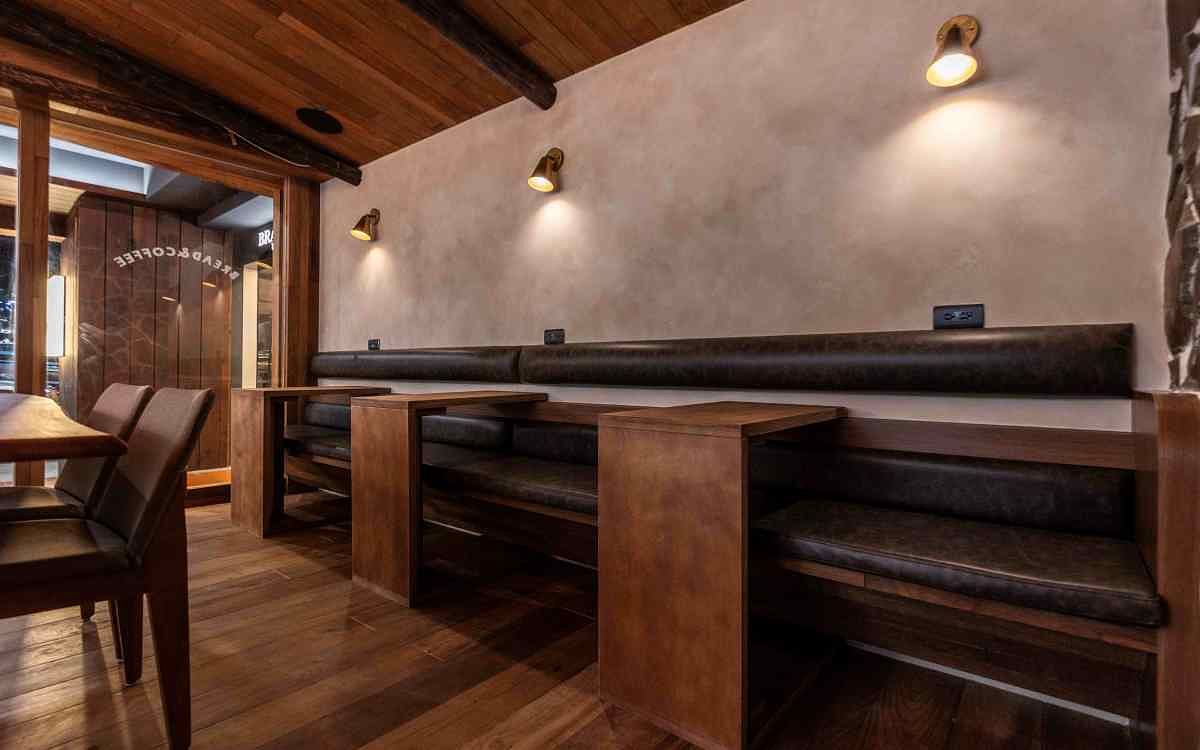 將咖啡甜點化、藉吧檯手之力創造美好體驗是森夜咖啡的原始設定,數年後創辦人Rick想讓品牌更進化,他表示:「咖啡和麵包對現代人來說都是生活必需品,讓人們在消費必需品時也有美好感受就是森夜Bread & Coffee的目標。」在夜色籠罩、靜謐安詳的森林小屋中享用老奶奶拿手料理是Rick嚮往的美好,為此憧憬,他用一年時間在台北東區打造一幢大地色系、溫馨夢幻的木屋,天花板鑲著回收再利用的紫檀木、地上滿鋪老柚木地板,牆面則以灰泥塗料、紫檀木與片岩包覆,搭配朦朧燈光,營造自然且舒適的氛圍。