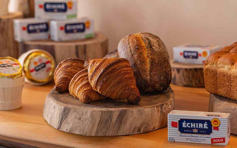 法國ÉCHIRÉ艾許奶油為AOP法定產區管制認證的頂級品牌,對乳源和製作方式要求嚴謹,其以傳統木製攪拌器製成的發酵奶油質地柔軟、富榛果香,受到眾多米其林主廚與甜點師的愛用與推崇。Rick表示, ÉCHIRÉ艾許奶油化口性極佳、香氣特別迷人,除直接搭配麵包享用,用於糕點製作也頗具識別度。