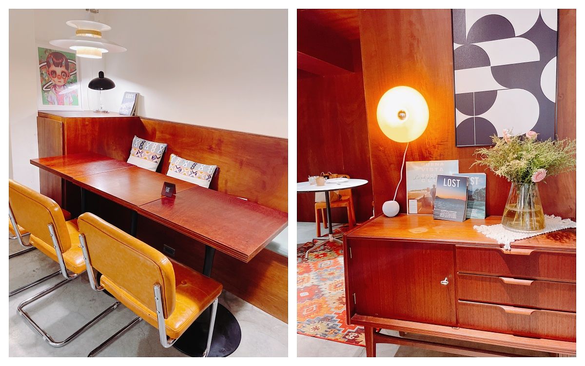 我們被安排的角落座位很特別,唯一鋪上了地毯,旁邊還有盞溫馨立燈,就好像歐美家庭的居家角落。