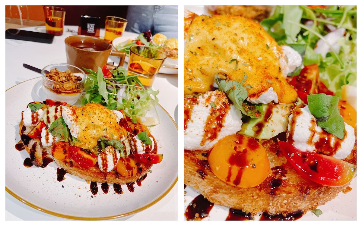 為了食用方便的開放三明治真的是女生的最愛,不需動手還可用刀叉享用,而且最底下的麵包片意外優秀,尤其是硬硬的邊邊部位烤得很酥脆,吃著吃著,會想整片拿起來啃。
