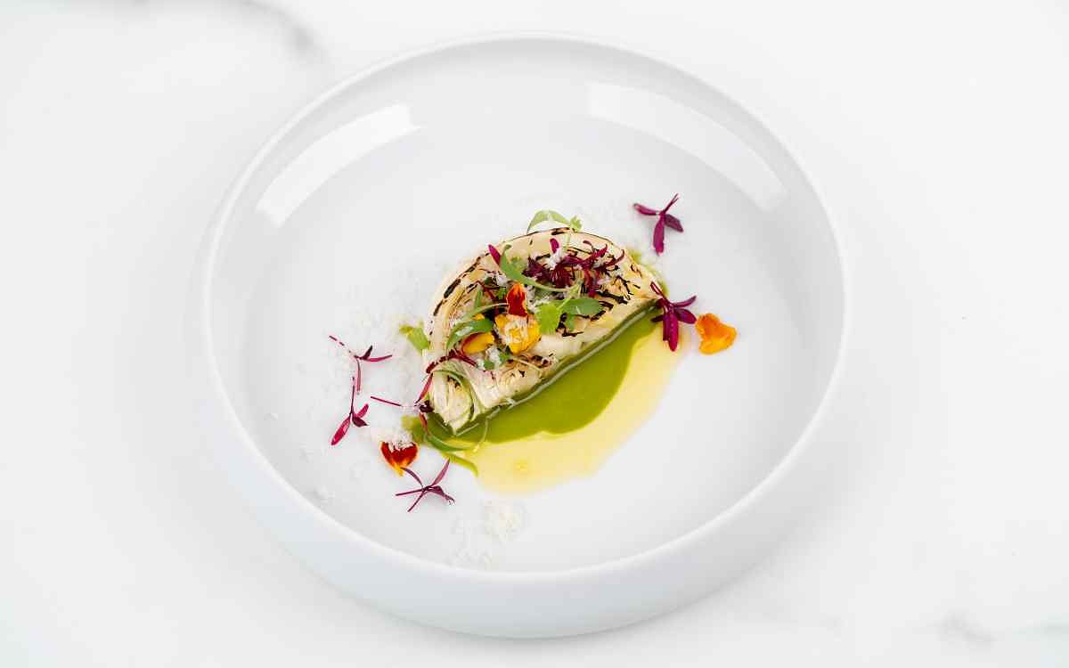 圖片來源:MiraWan Eatery能完美詮釋山中秘境的清新意境是《高山高麗菜 澳洲冬季黑松露 康提起士》,嚴選台灣高山高麗菜,將其烙烤至半生熟,片片高麗菜間夾入香濃的澳洲黑松露與康提起士,並搭配翠綠的蘿蔓和甘甜的鳳梨雙醬,刨上夏威夷果仁增添風味,為炎炎夏日帶來一抹清爽怡人的感受。