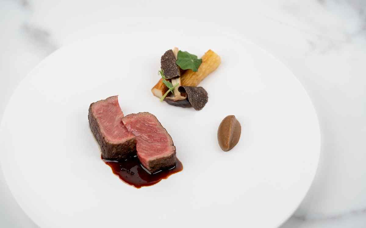 圖片來源:MiraWan Eatery 《澳洲和牛紐約客 茄子 羊肚菌》嚴選來自澳洲的全自然放牧和牛,因以天然草料飼養而擁有獨特的風味,油脂豐富、肉質緊實,搭配赤味噌茄子泥,味道濃郁而帶有微甜的鹹香,再淋上以煙燻骨髓與羊肚菌調製而成的醬汁,深沉的香氣與和牛的鮮嫩相互交織,唇齒留香,令人回味無窮。