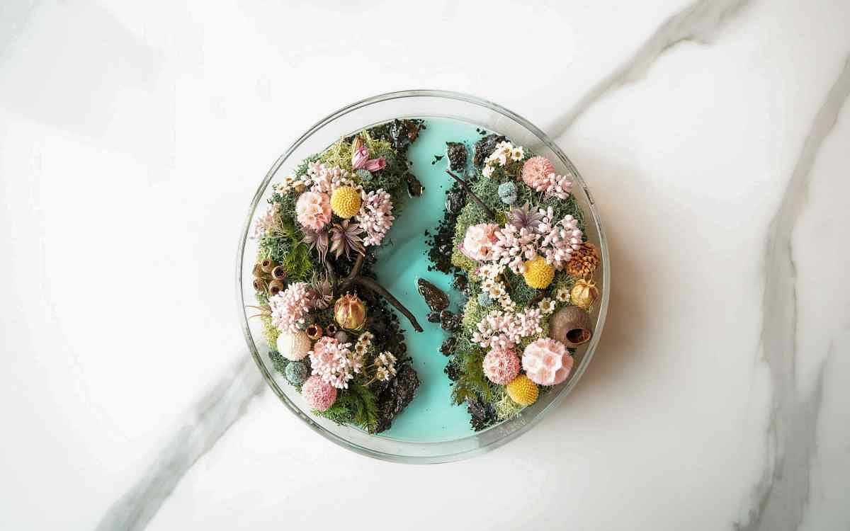 博匠國際餐飲集團行政主廚Josh(鄭裕錞)與甜點副主廚Tony(洪御軒)攜手創作,以午間套餐、晚間套餐及下午茶詮釋他們心中的夏日後花園,本次團隊不僅在料理上為大家帶來味覺驚喜,更跨界與花藝品牌《煙花蕨醒》的主理人曾建銘合作,將藝術色彩大膽融入花藝設計的擺盤陳列中,打造了全新的視覺體驗。