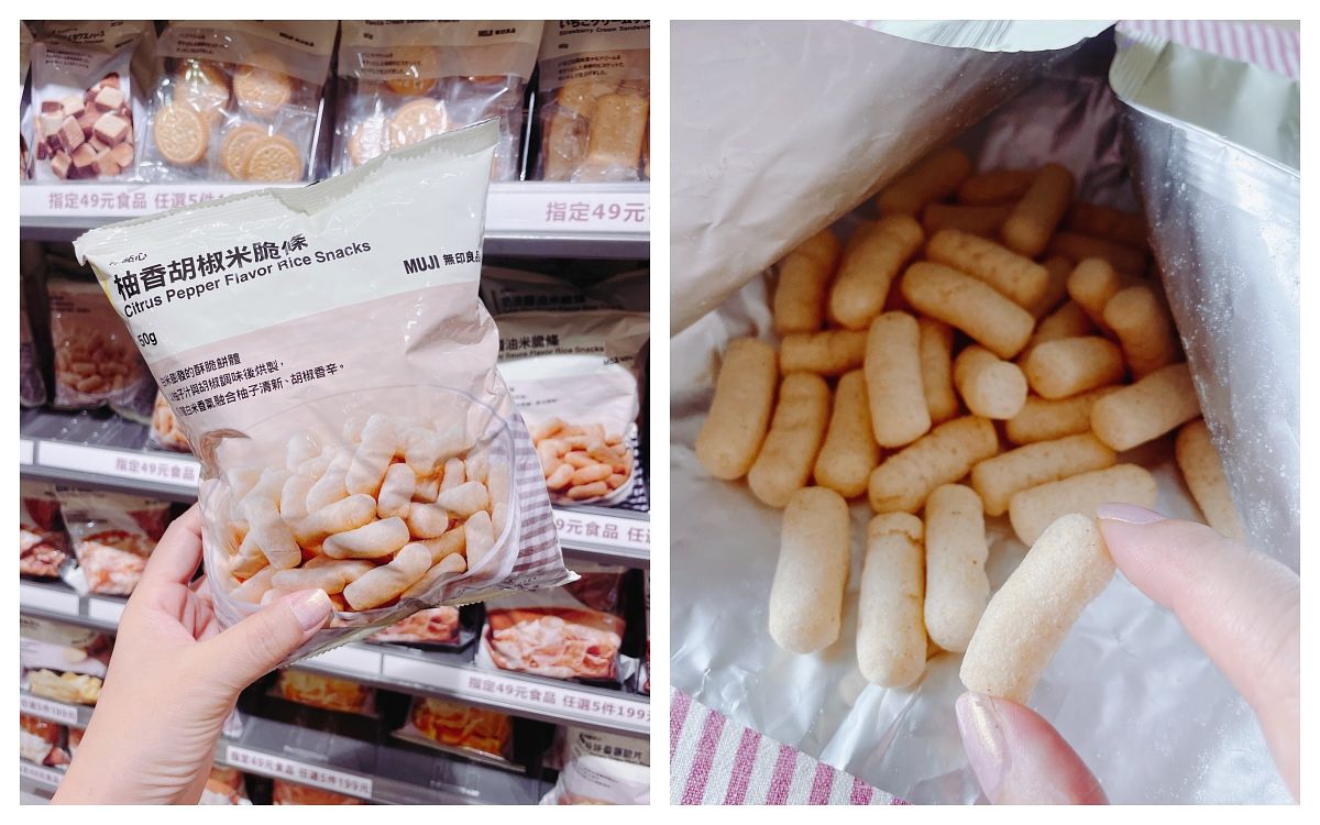 「米點心」系列我超級推!以為吃起來像乖乖但完全不是,很像BABY長牙啃的那種米餅,入口即化,再加上大人調味這樣!喜歡特殊口感的人就選“柚子椒鹽”,因為酸酸柚子加上白胡椒粉的味道,很微妙但會一直吃還會回購!