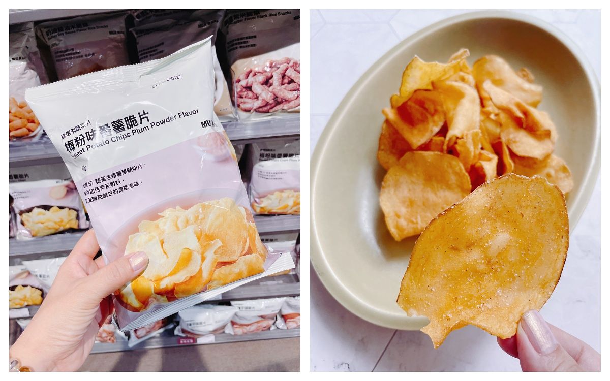 「無選別蔬菜片」好吃得不得了,芋頭有鹹有甜,地瓜有原味跟梅粉!選用的品種讓切片特別大片,而且又薄又脆還不油,也因為太天然,咬一咬還會在口中直接還原!但梅粉口味的地瓜片沒啥梅粉味,所以買原味也OK啦!都好吃!