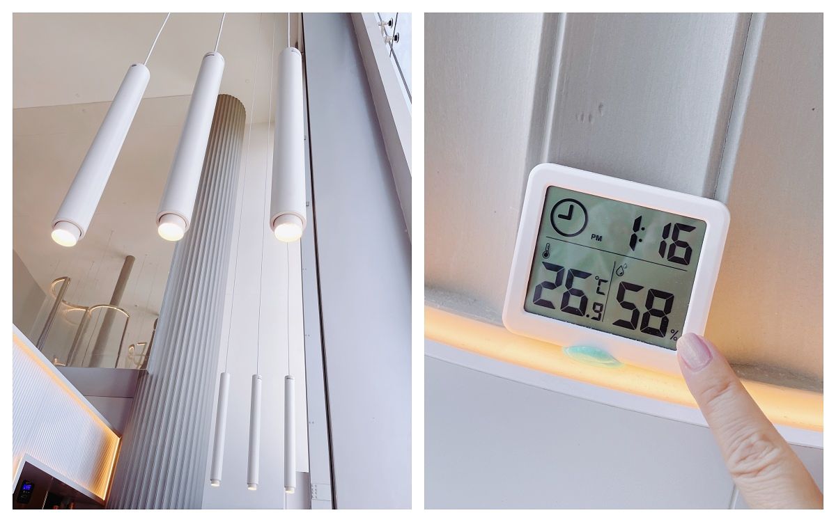 也因為窗邊座位有日照問題,所以旁邊還準備了溫度計,偶爾電動窗簾還會無預警降下,不確定邏輯是什麼,但基本上中午時間並不會熱,不用擔心。