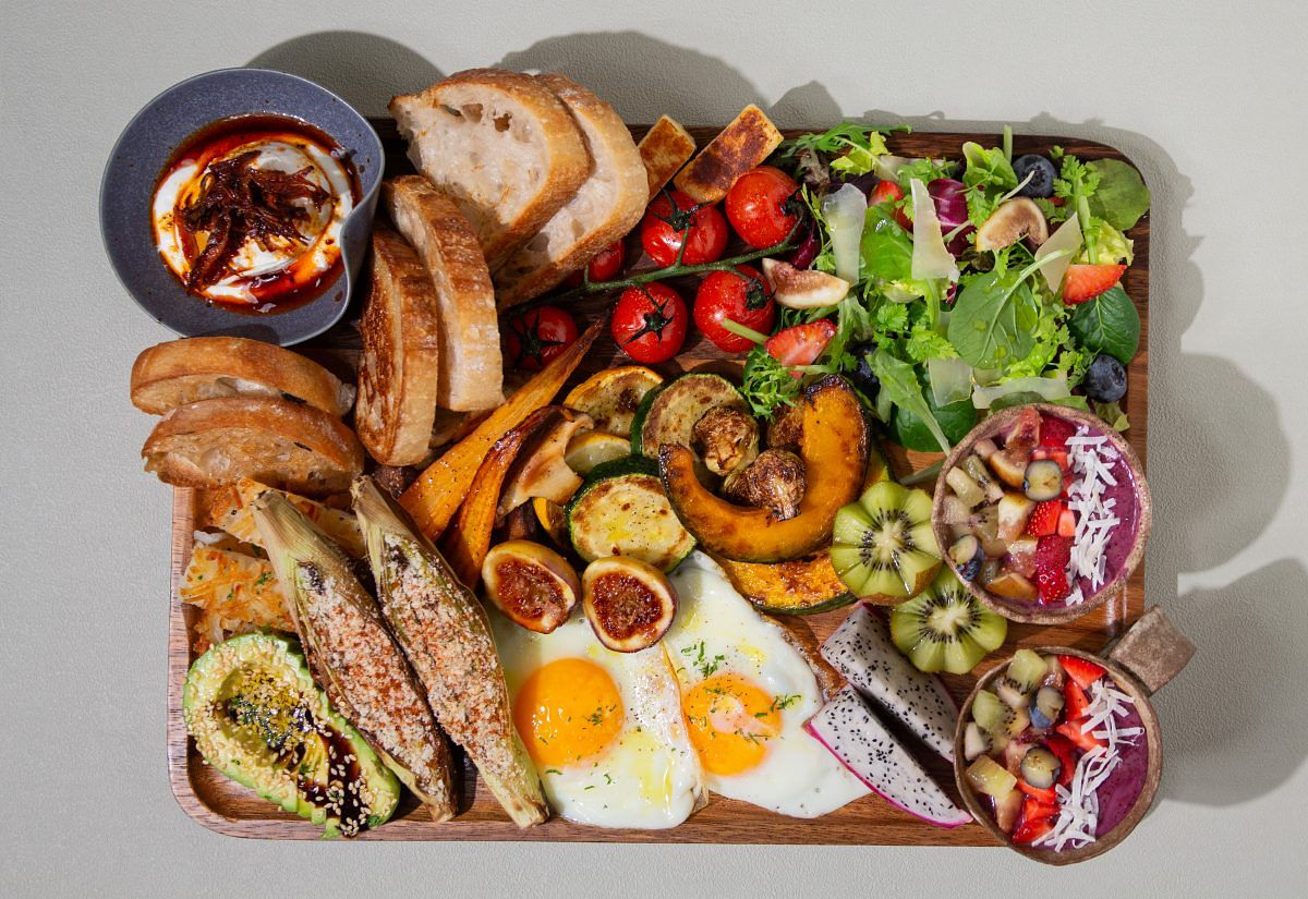 嚴選各種在地新鮮食材、色香味俱全又豐盛的雙人大早餐盤,是你在小小樹食微風南山的早午餐首選!土耳其蛋、自製薯絲餅、哈魯米起司、季節烤蔬菜及時令沙拉,搭配酪梨、無花果以及季節水果,單獨食用或是與酸種麵包一起入口都各有風味,最後還有能夠攝取到多種水果與營養的優格杯。